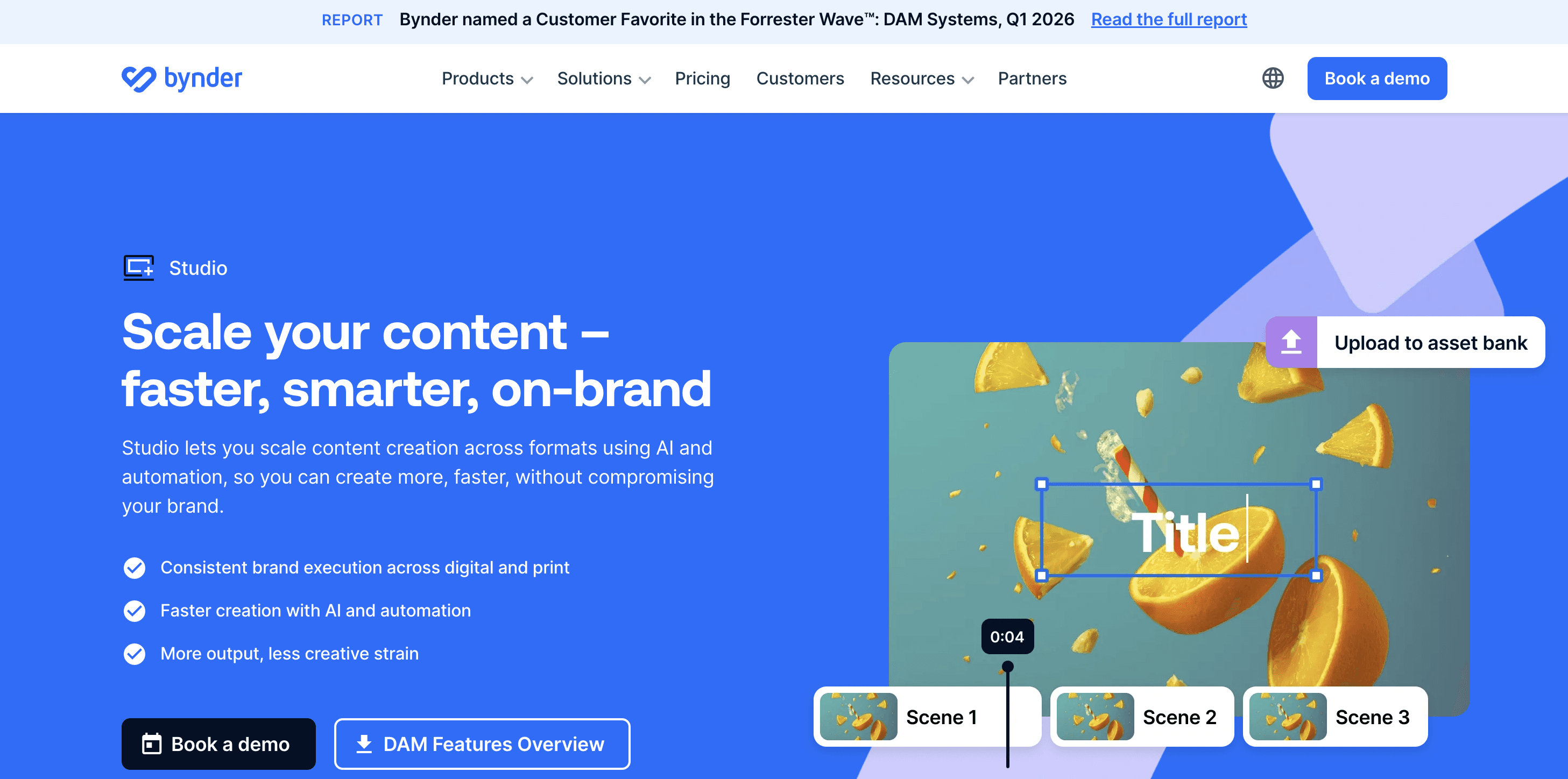 Bynder was named a Customer Favorite in the Forrester Wave DAM Systems Q1 2026 report. Studio is its creative automation layer: built to turn the DAM into a production hub. If your team already lives in Bynder, Studio is a natural extension. If you do not already use Bynder as your DAM, adopting it primarily for creative production means paying for infrastructure you may not need.