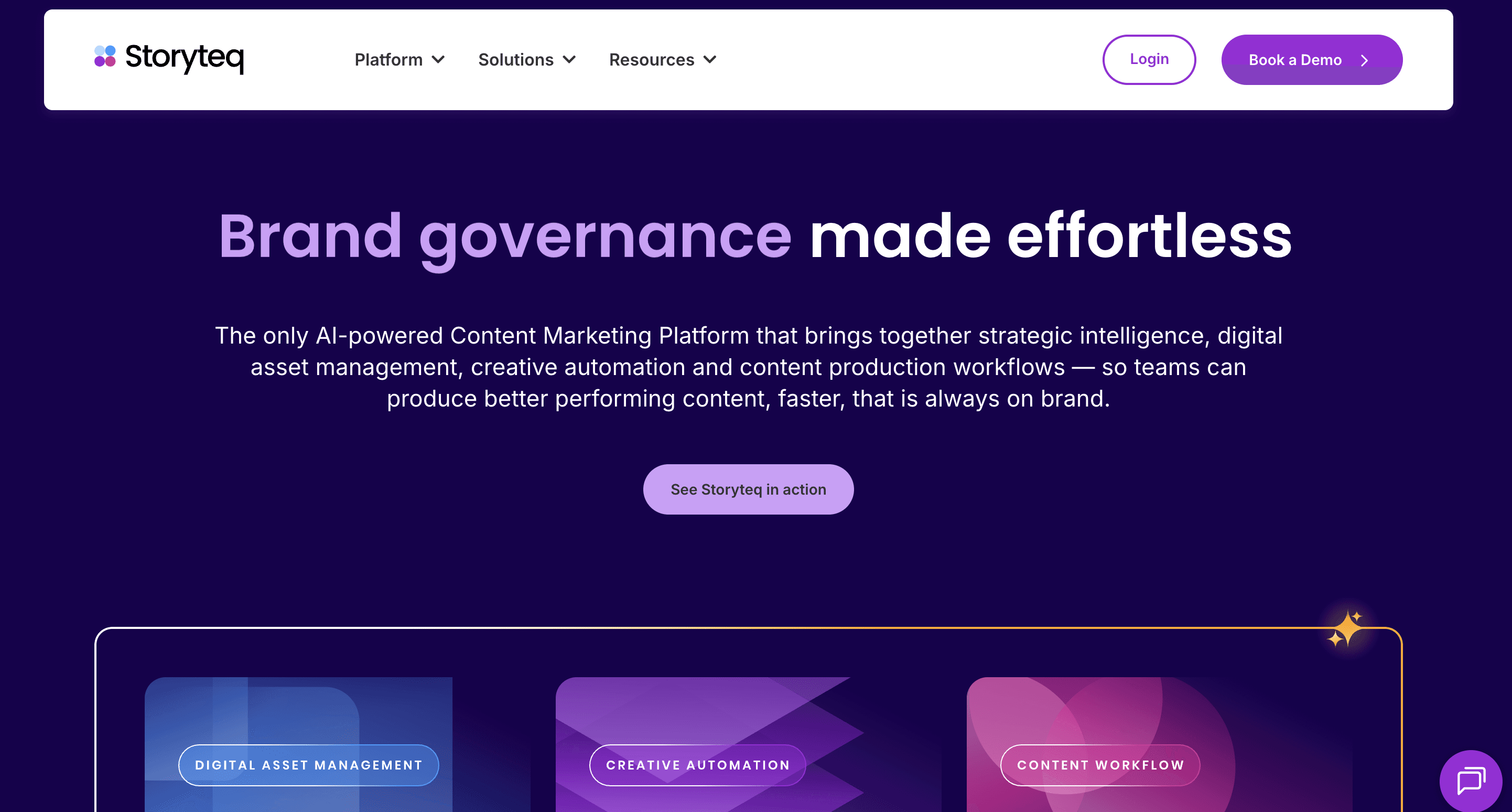 Storyteq has three connected modules: Content Portal (find, organize, track), Adaptation Studio (version content for every channel and format), and Collaboration Hub (briefs, reviews, and approvals in one place). The pricing model is published: €30,000-180,000 per year depending on scale, which makes budget planning more straightforward than most enterprise platforms in this list.