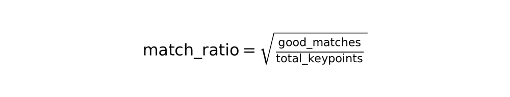 The algorithm calculates a match ratio based on good matches (those passing Lowe's ratio test):