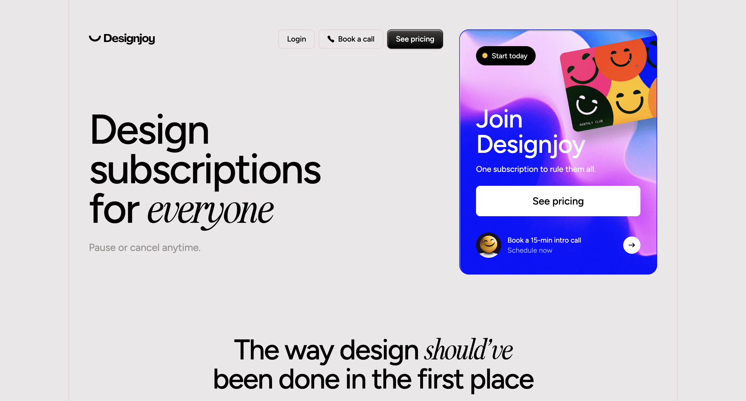 One SaaS startup reported a 15% increase in landing page conversions after Designjoy redesigned their brand identity. Clients describe it as "senior design quality at your fingertips."